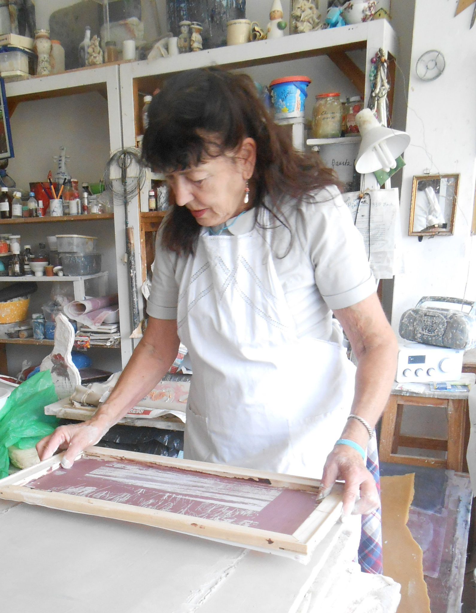 Siebdruck begleitet sie nun schon einige Jahre und ihr Weg führt treu immer wieder ins Keramikmuseum im wunderbaren Kannenbäckerland.